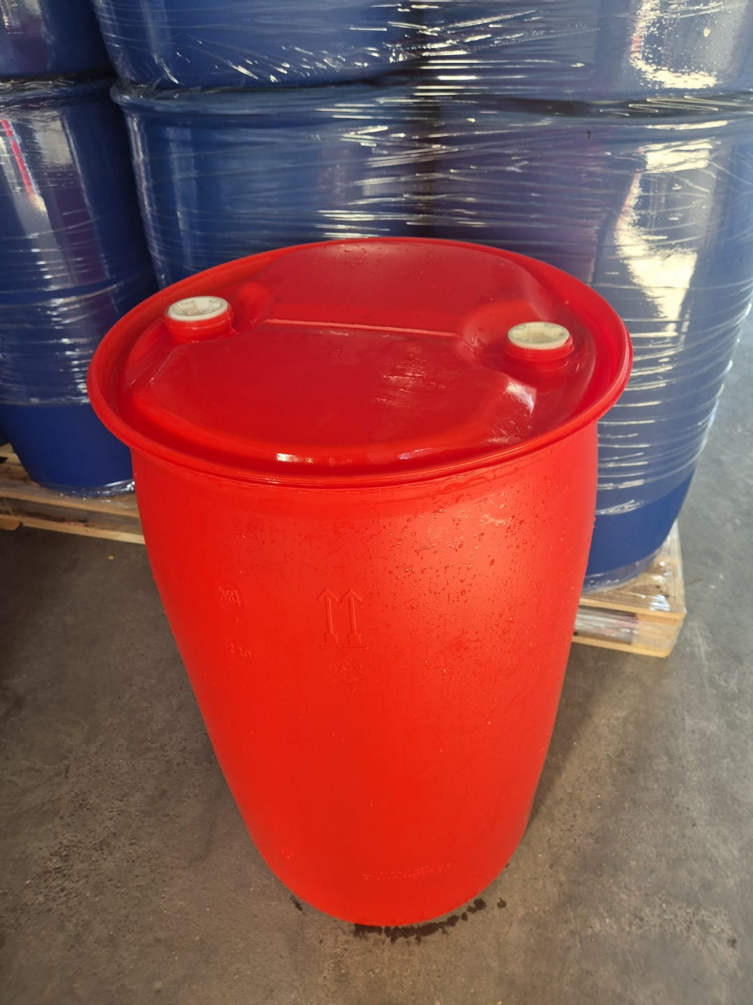 Beczka plastikowa dwuotworowa 220L czerwona , używana