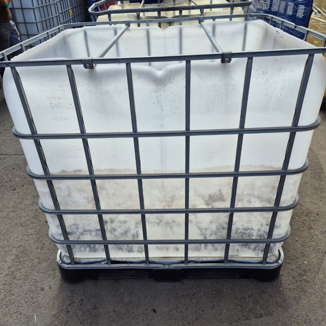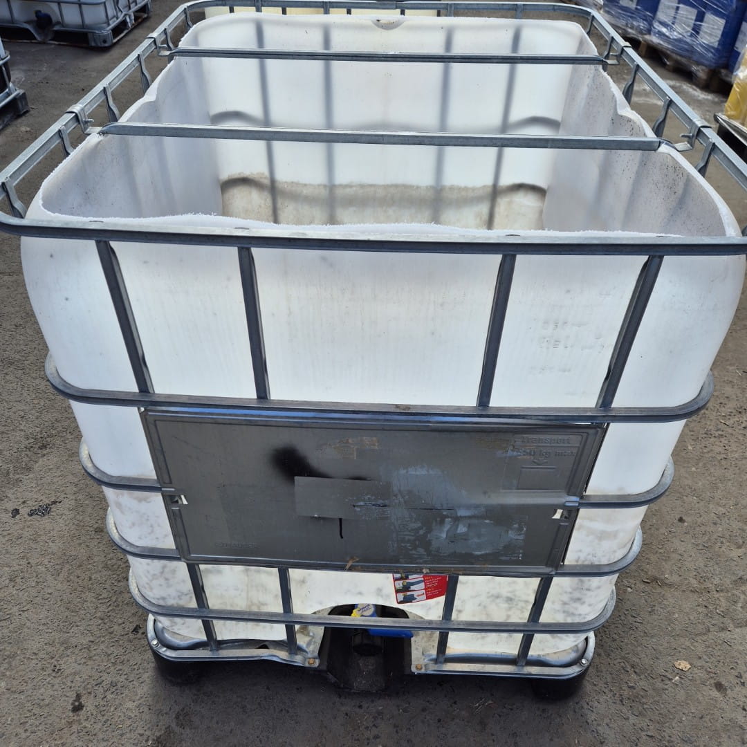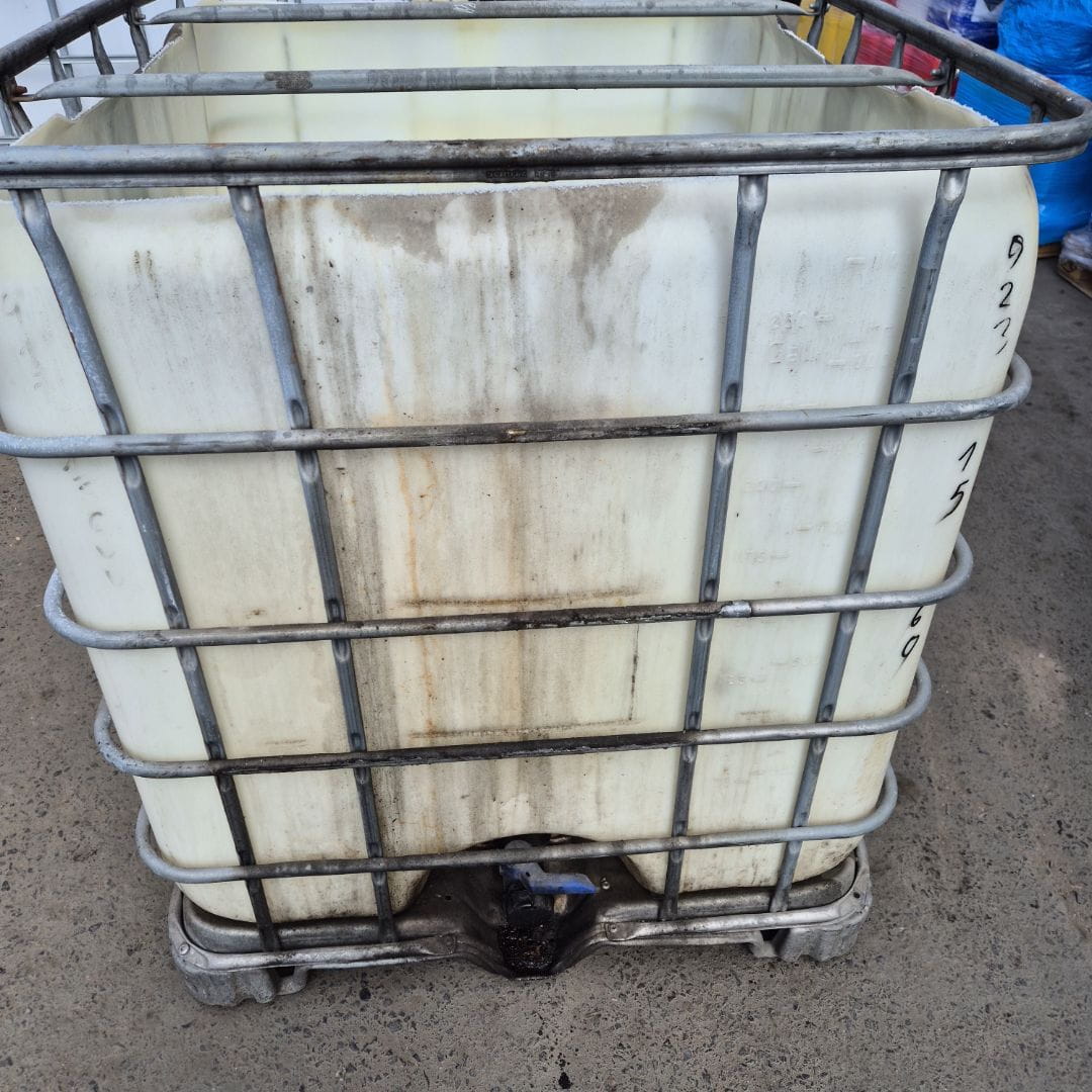 Zbiornik IBC o pojemności 1000 litrów w stalowym koszu ochronnym na palecie. Zbiornik wykonany jest z grubego tworzywa HDPE, dzięki czemu jest bardzo wytrzymały i odporny na uszkodzenia.