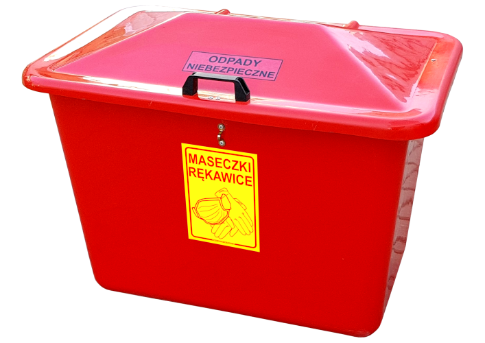 Pojemnik 220L na odpady niebezpieczne: zużyte maseczki, rękawiczki , fartuchy.