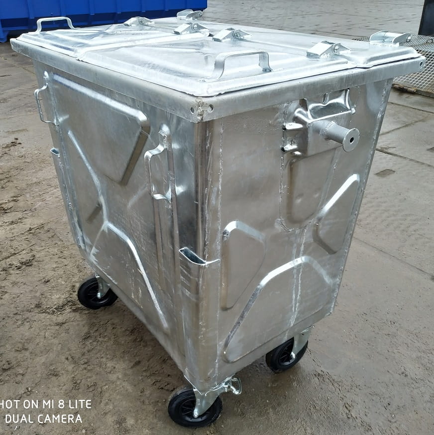 Pojemnik 770L metalowy ocynk. pokrywa płaska EN 840-2