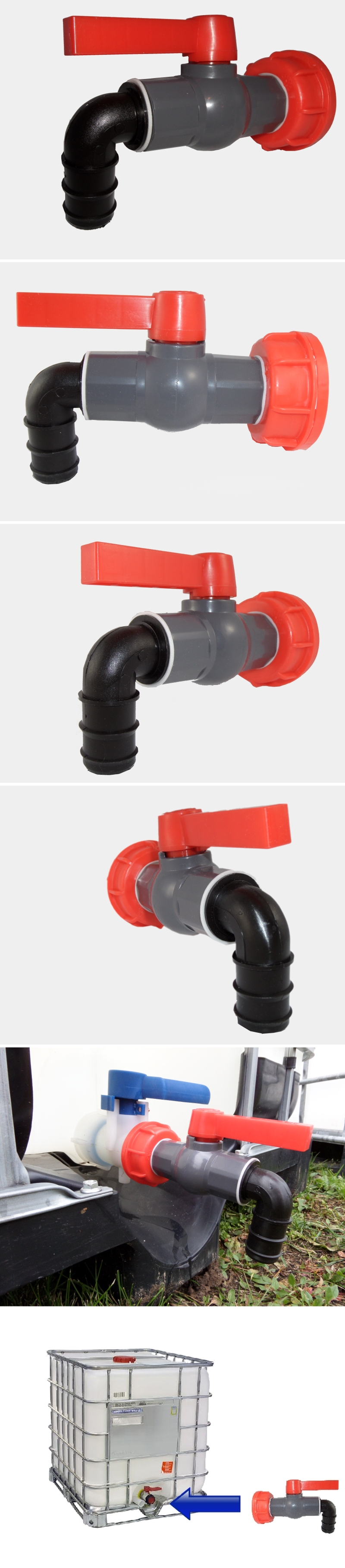 Zawór czerpalny 1"+nakrętka fi 61 mm+dławica kątowa 1 "